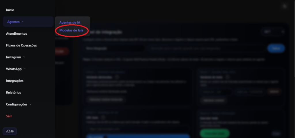 • Agente de fala: habilita respostas em áudio.