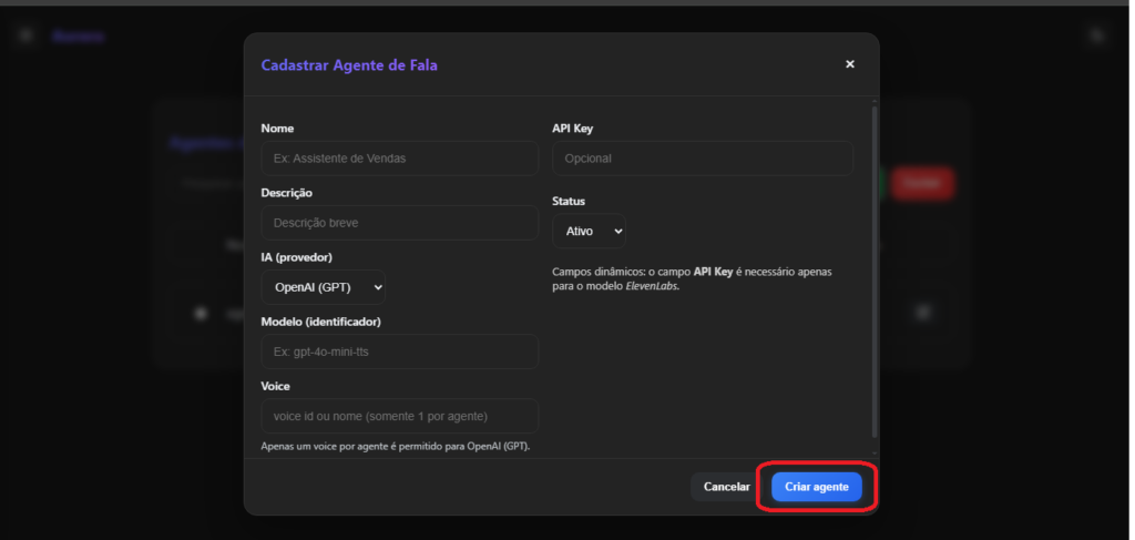 Criar/Editar Agente